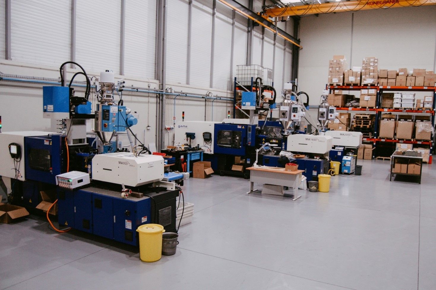 Nesta área contamos com 3 máquinas de injeção Haitian, de 90, 160 e 200 toneladas, todas elas equipadas com Robots Sepro Success e estufas. |